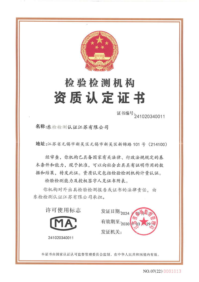 東檢檢測(cè)認(rèn)證江蘇有限公司(mddq06.cn)?